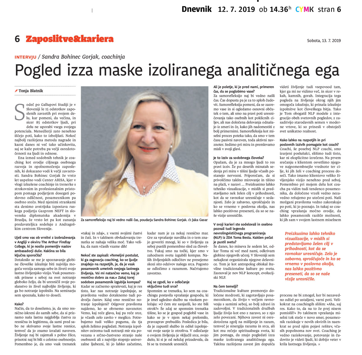 V Dnevniku je bil objavljen intervju s Sandro Bohinec Gorjak, kjer lahko bralci med drugim preberete o tem, kaj se zgodi, kadar v odločanje vključimo srce, kako lahko coachi pomagamo na življenjskih razpotjih in poslovnih izzivih ter kdaj je primeren čas, da se poglobimo vase. Vabimo vas k branju prispevka, ki ga najdete na povezavi >>